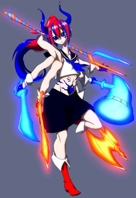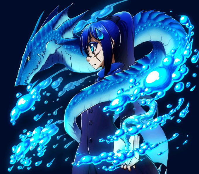 #フォロワーさんからイメージもらって自分をサマーウォーズのオズアバター化する つり目、ドラゴン、特徴的な髪留め、全体的に青色で牙がキバキバ、戦闘特化をいただきました!ありがとうございました!!