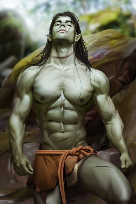 Happy, happy Orctober! 💚💚💚 This is a new commission of my orc Drafli, from the utterly BRILLIANT @qai_san. Thank you Qaisan!!!