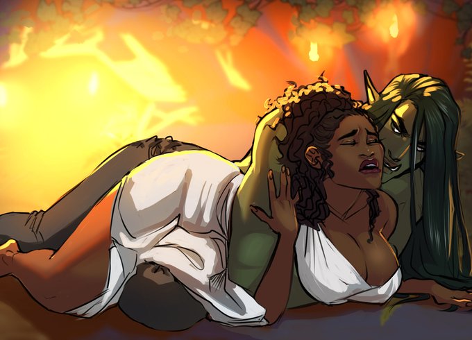 In total awe of this new painting of my orc John and his mate Rosa, by the completely brilliant @ekbelsher! 😱😍🥵