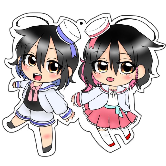 セーラーモチーフの衣装にお互いのイメージカラーのリボンを