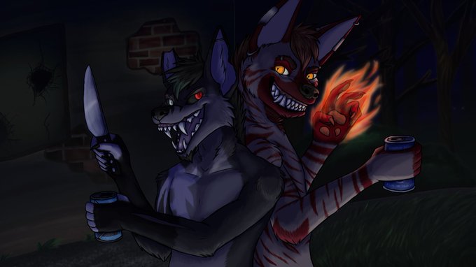 (Photo and the artwork featuring @/Doof_Fuchs is by me, the artwork with @/Sharkahm95 is by @/AkiraFeligon :3)