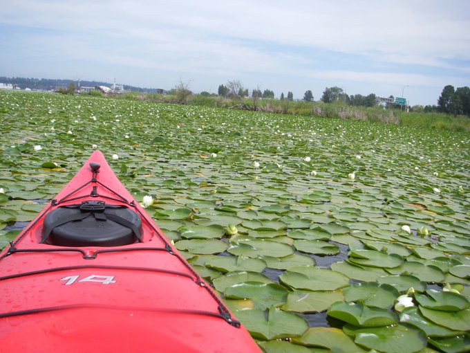 So here I’ve made my #cryptid. A giant and superaggresive snakehead that has taken up residence in the lily-pad covered kayaking channels in Lake Washington. Murky water, plant cover, and the feeling of being all alone in a small boat- once again playing to the human psyche