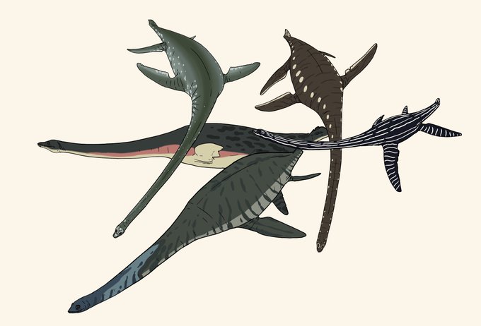 Reminder on how robustly built a lot of elasmosaur skulls were. The big rectangular spaces behind the skull are called the supratemporal fenestrae and they were COMPLETELY FILLED with muscle!
