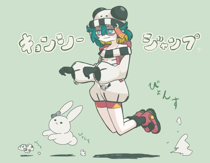 キョンシージャンプするエクセきゅーとちゃんさんを描きました🐼 (キョンシーは関節曲げない) #絵クセきゅーと