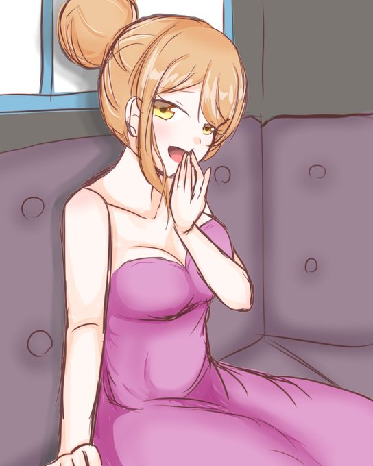 「コチラの動画(https://t.co/sgEXt0xk5I)に出てくる紫のドレスを着たキャバクラ嬢のイラスト」です!