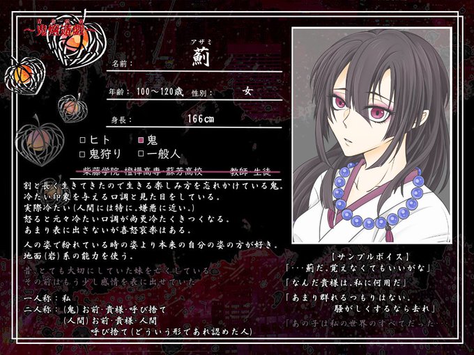 こちらの素敵な企画【 @oniasobi_TL 】に参加させていただきます。 扱いにくい性格してますがよろしくお願いします! #鬼遊_CS #鬼遊_鬼