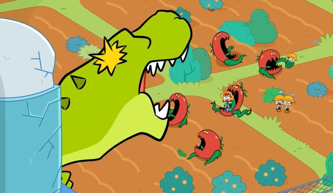 테니스 공같이 생긴 외계인을 아작내주는 와중에 쿨하게 서포트해주는 디노.