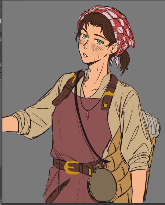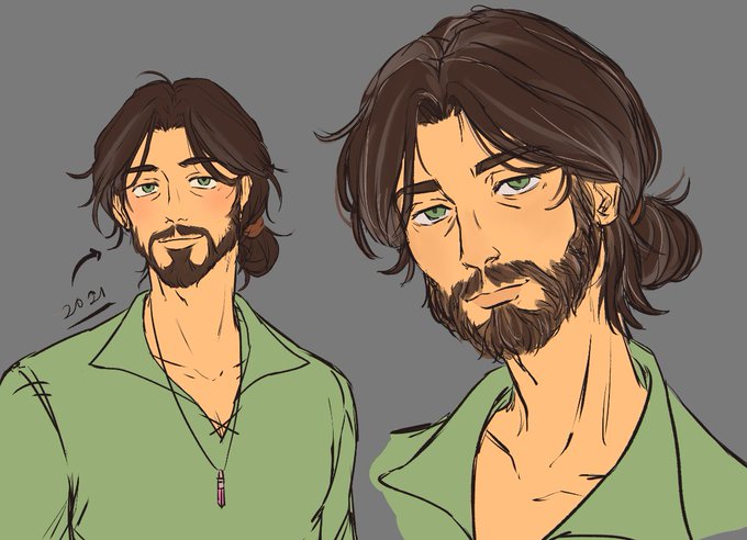 [oc] today's doodles ft. a redraw of my oc's grandfather, oc's malewife fit, and him kissing one of his partners :]