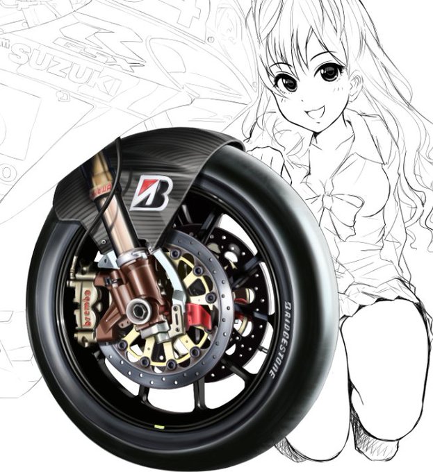#ビキニの日 前に描いた中野ちゃんのビキニ絵 背景はいま描いた。バイク塗りはまた今度