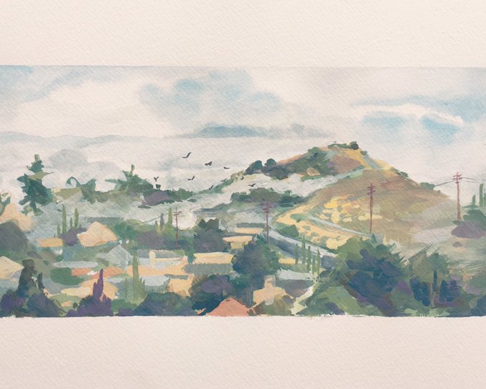 Woke up this morning to a beautiful blanket of fog over #highlandpark. #gouache #landscape #art #environment