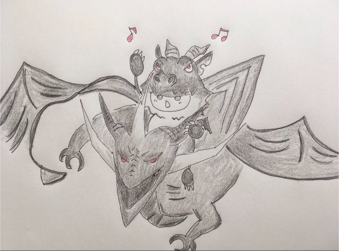 FFコラボのバハムート戦も、いい思い出! 竜殺し上方修正にビビり散らしたちび黒竜が、つよつよの親戚のおじさんを召喚…というストーリを勝手に作ったりしてました(笑) 今でも憧れのおじさんです🥰 #FLO #2周年のおもいで