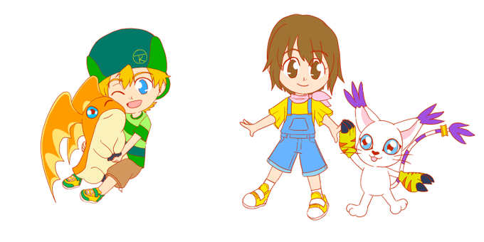 We're at 2 weeks now without a new Digimon Adventure episode, but in the meantime here are the kids in their original designs. (Basically just edits of the last time I drew them.)