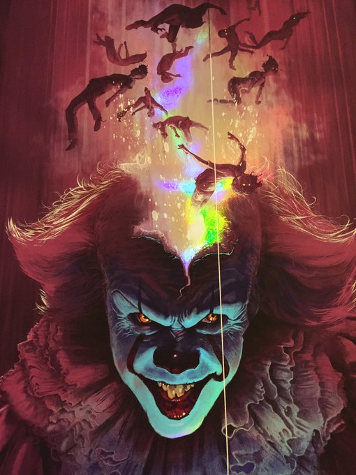Foilのキラキラと印刷のメッシュを巧みに利用した質感で、ペニーワイズが青味を持ったまま輝くのですが
