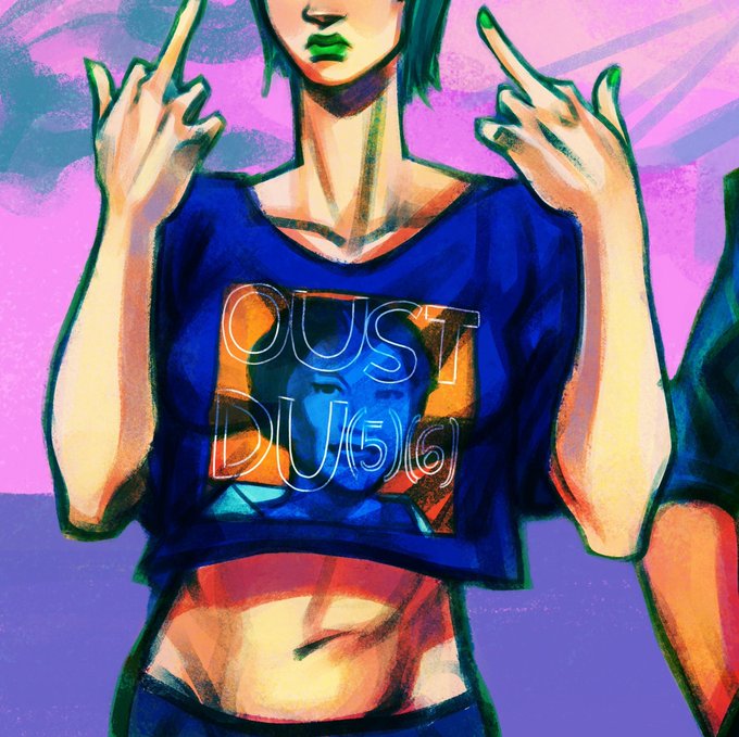 i don't have a lot of finished #stoneocean art before i kinda dipped from jojo fandom but have these old jolyne and foo fighters drawings 💚💚