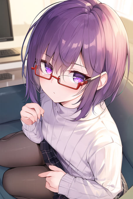 見上げる構図でいろいろ出してみる、斜めに見上げてる一枚目がかわいいので安定して出せるプロンプト探したい