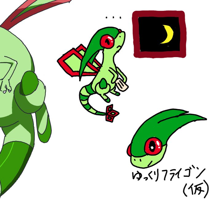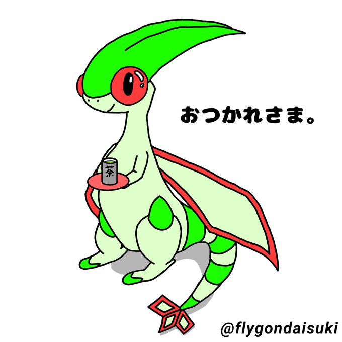 今日もおつかれさま。 ほっと一息。お茶をどうぞ。 #ふりゃアート #ポケモンイラスト #フライゴン