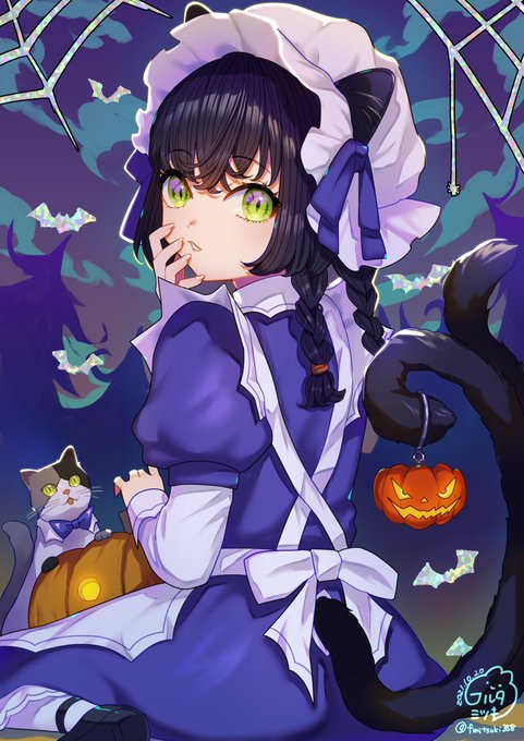 ハロウィン3枚目👻 黒猫メイドのキティ 執事猫のセバスちゃんと共に今日もがんばっている🐈⬛