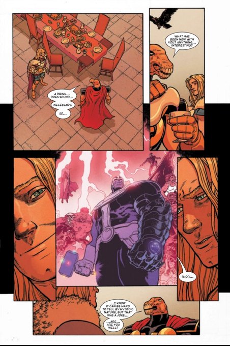 訂正、「アスガルドを愛するソーの話」はTGoT 12だった!画は現行のニック・クライン氏!元ネタあちこちに散らばってるから見つけ難い…他にも過去誌で現行誌に関連しそうな(特に神の時間知覚)重要設定部分あればジェイソン・アーロン期詳しい人教えて🙏[画像:試し読み頁引用]