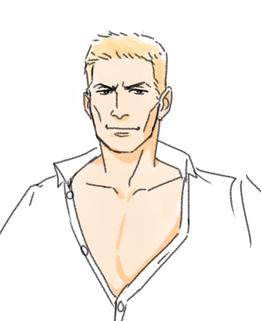 who else is up and at em this lovely morning doodling pictures of ocelot in a plain white unbuttoned shirt