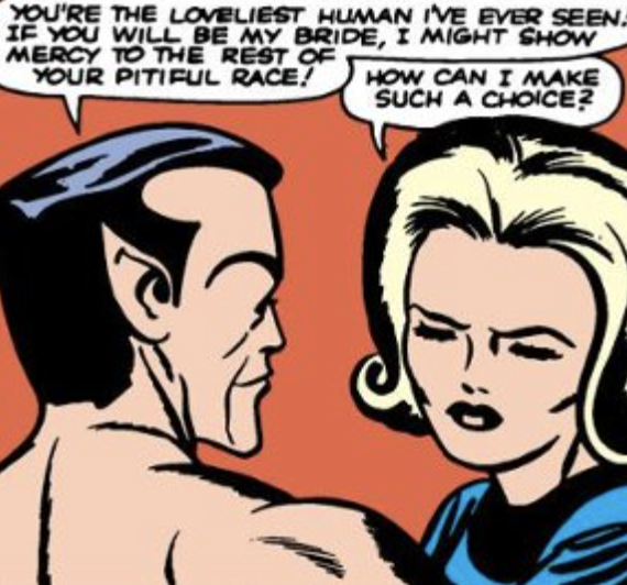oh so mr "i'm gonna kidnap susan and force her to be my bride and if it doesn't work i'll keep trying it for years and years" is the voice of feminist allies in fantastic four life story huh. LMFAO. OKAY. ALRIGHT