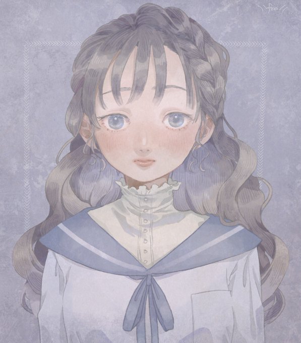 ブラシの練習🖋 イメージは、お嬢様女子校にやってきた転校生。お人形さんみたいな雰囲気にざわつく感じ。 2枚目は彩度とか変えて遊んだやつ。 この塗り方も柔らかくて楽しいね。