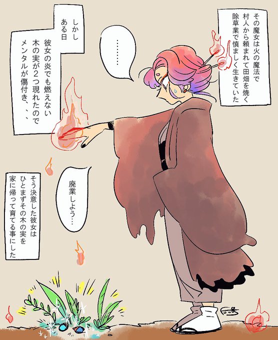 それからというもの魔女は炎の魔法を生涯使う事はありませんでした。 #魔女集会で会いましょう