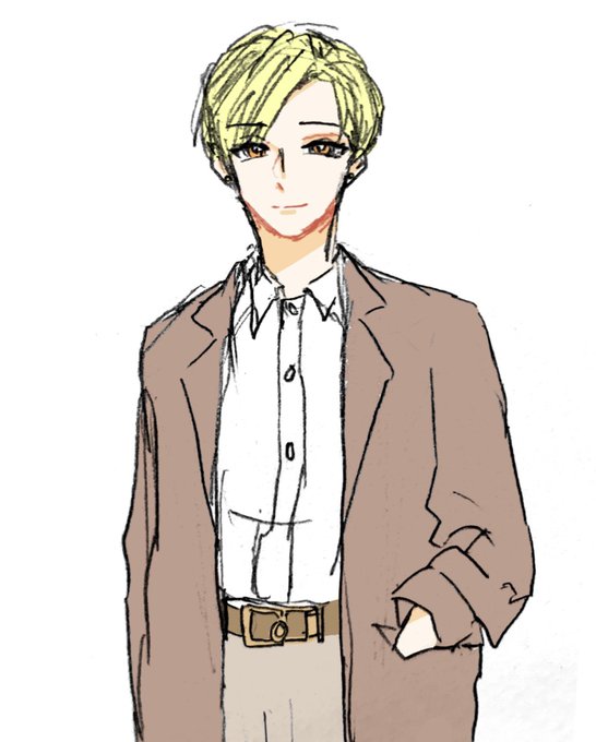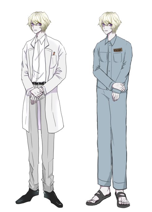 ヨシュカくん囚人服差分も何となく描いといた 2枚目のはね 作業する時は前髪邪魔だから上げるよっていう絵 でも普段は前髪ある方が落ち着くから切らない