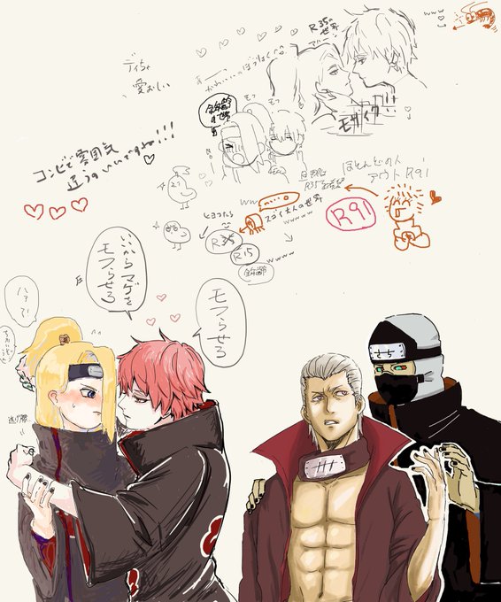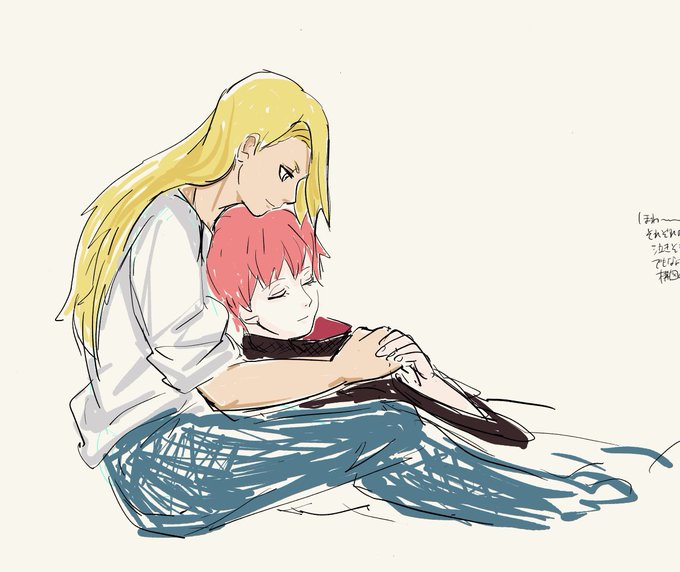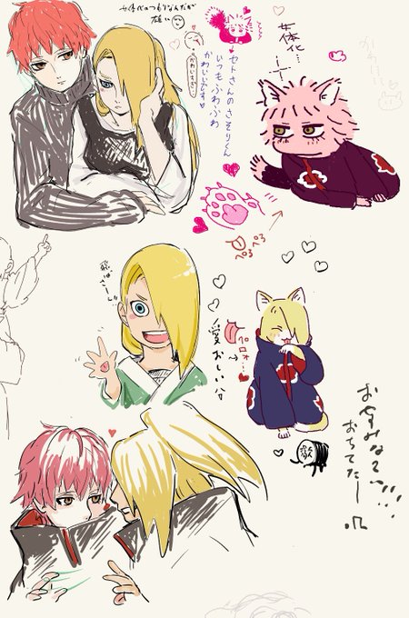 ワイが描いたものと合作の全体像w 2枚目は眠気に負けて途中で終わってしまった絵ですが、現パロデイちゃんが傀儡のサソリさんを抱く図😌