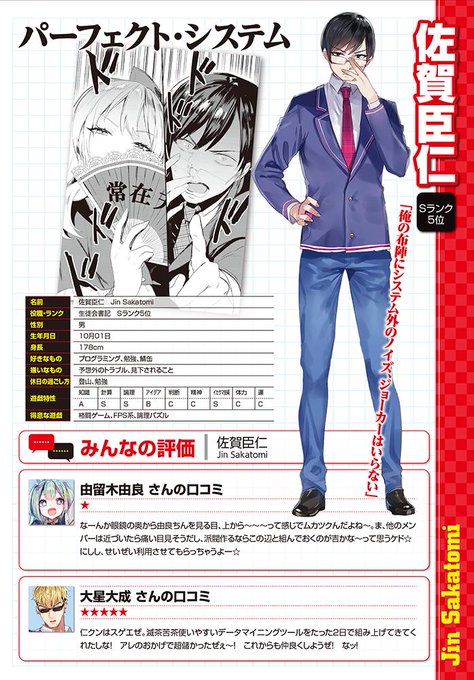 本日は佐賀臣仁の誕生日! 獅子王学園の元生徒会書記、Sランク5位の実力者。同じ生徒会の大星大聖と交友が深い(ようです)。