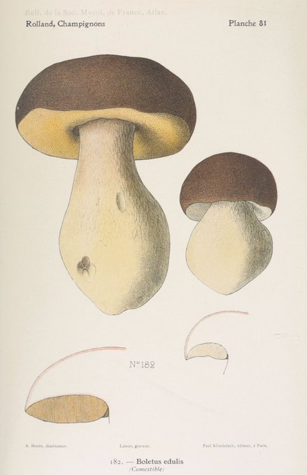 Bon, ce n’est pas tout. Avec Rover, nous révisons pour les récoltes à venir, dans l’Atlas des champignons de France, Suisse et Belgique de Léon Rolland, publié chez Klincksieck en 1910. Sur @GallicaBnF : https://t.co/FU67lE7qC9. Ceux-là, c’est ceux que nous recherchons !