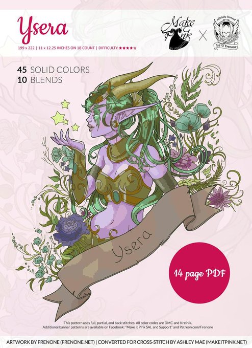 Pinky did such an awesome job converting my Ysera art for Cross stitching! Pattern is available on https://t.co/vqQrOI8RgL