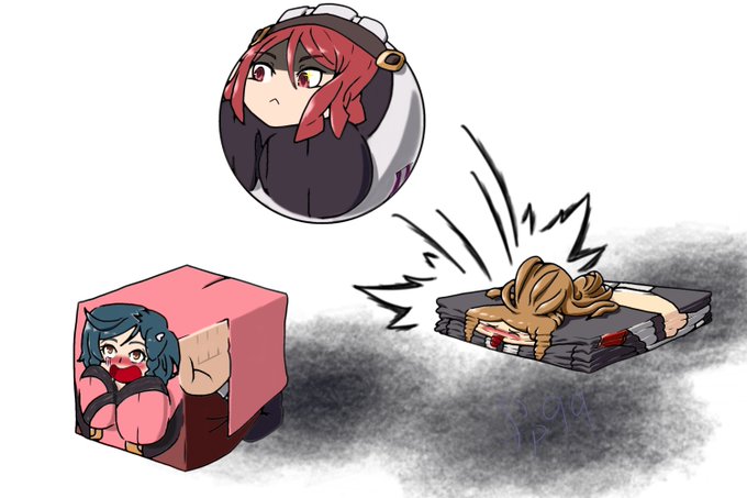 This week's work. Next week's will feature one of the Minos from Gunvolt bowling over two others, along with a one-shot story taking place in a Roman-esque colosseum. The week after will be a TF sheet of the two Muses helping thorughout Gunvolt, as a way to top off the series.