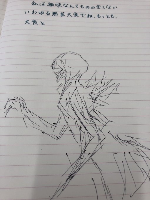 昼休み社食書写 書き間違えたので、余白にゴジラ第五形態を グロいもの苦手なんで要練習……