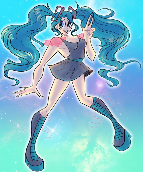 no furry art currently but have this aged-up #HatsuneMiku drawing #fanart