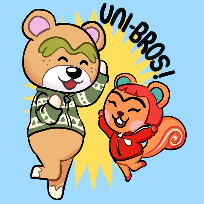 I have Hazel and Nate on my island and they've bonded over their sick uni-brows. #ACNH #AnimalCrossing also I'm late but #villageraday