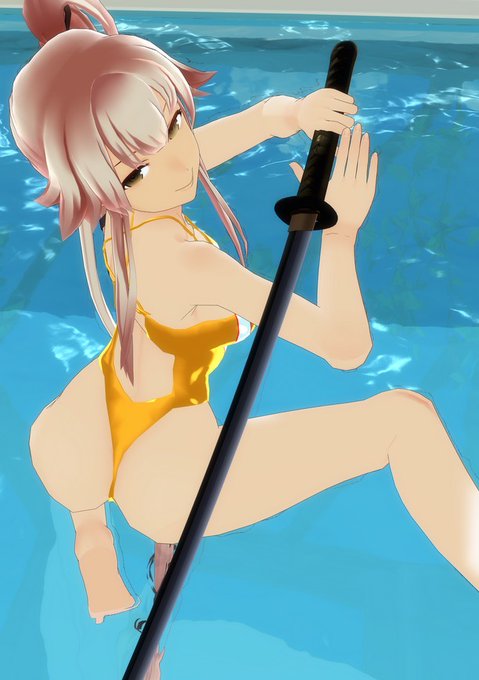艦娘水上グラビア。正規空母天城。改衣装がまんま水着なので少しアレンジしただけ。衣装ポリゴンから素体を削り出してプロポーション調整。4枚目は件のプールのpmx化版。ルーフもスライドするように改造。