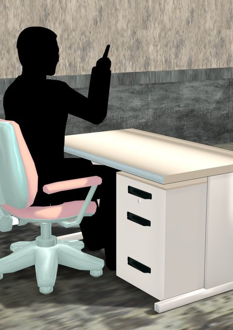 机。事務室セット揃えるかな。黒い人のは幅が広くてサイドキャビネット付き。小鳥さんが座ってるのは普通サイズの。並べて島を作るやつ。
