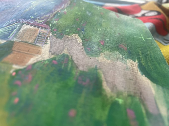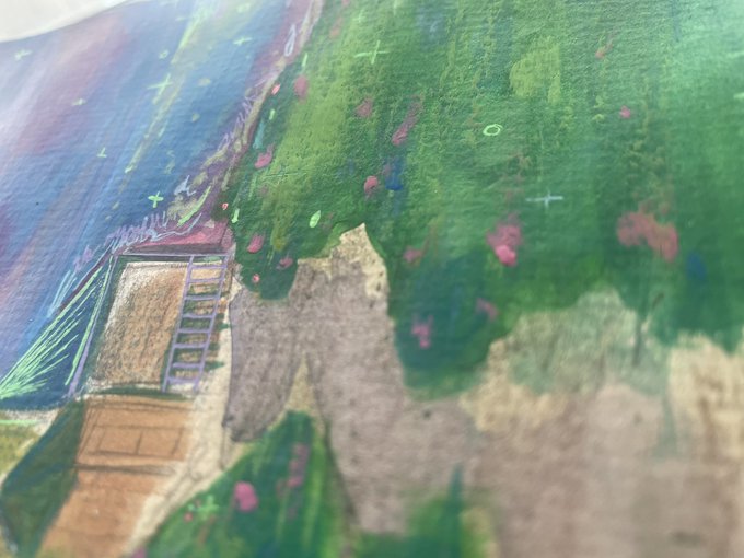 dreamy landscape i did to test out my new sketchbook #ArtistOnTwitter #gouache #oilpastel