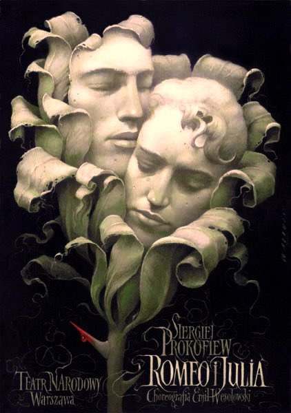 1. "Romeo i Julia" poster for Warsaw's National Theatre by Wiesław Wałkuski