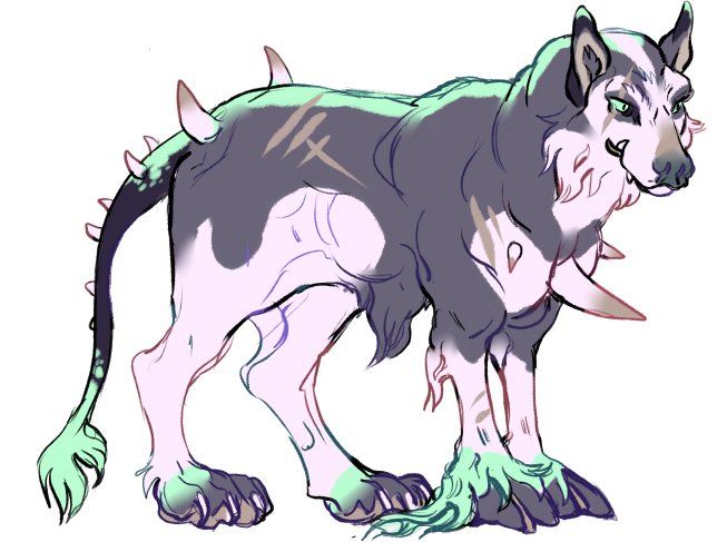 Ribboned wolf is a single dollar; the hellhound with green highlights cost me $15 but I'd take $10.