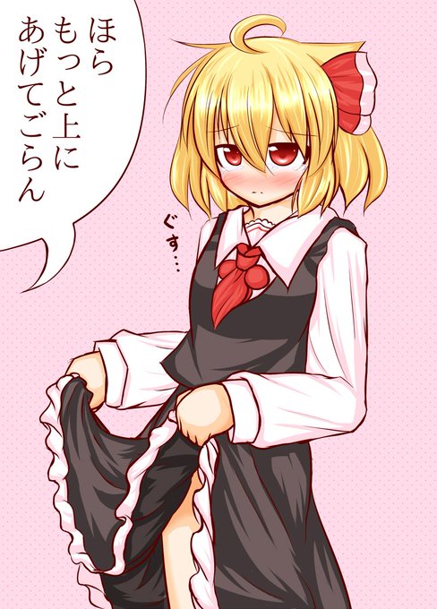 赤面(恥じらい)、涙目、たくし上げ、ぱんつが性癖です。とっても健全!! ルーミアちゃん可愛いですよね!! #私の絵柄が性癖に刺さる人に届いてほしい