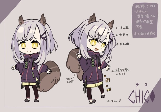 自分をキャラクター化した〜という設定画できた!アイコンにしてるリスの女の子です!