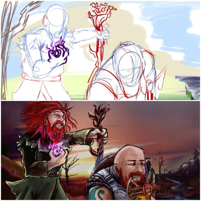 Color mapping is the stage when I figure out what colors to use for shading and highlights, and where they go. Got a good bit left to do, but it'll be fun. https://t.co/zQxqd9WaTR