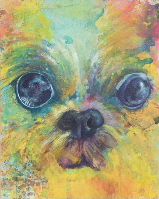 F100 「留める」 アクリル、メディウム、キャンバス #犬 #絵画