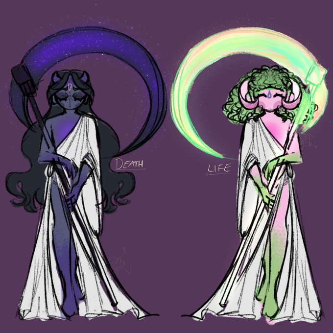 [ignore the text I'm workshopping script] anyways ms paint is good for silly little sketches of silly little gods represented by silly little eyes talking about how their silly little creations have scorned them by trying to cheat death 😊😊
