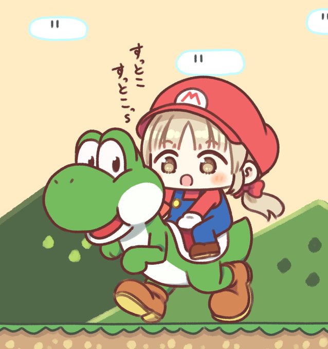 すっとこすっとこ進むヨッシーくんとクレアさんの冒険とっても好き #描いたよクレアさん