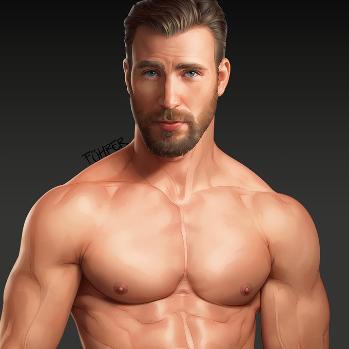 #illustration #art #fuhrerdoodle #captainamerica #chrisevans #steverogers #portrait #drawing #fanart #musclegod #pecs #beard