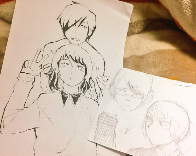 @fuji_610 潤ちゃんと日向とゆきせんせと似顔絵描いてもらったんだぜ~~!!けっけの潤ちゃん優男そう…イケメン…