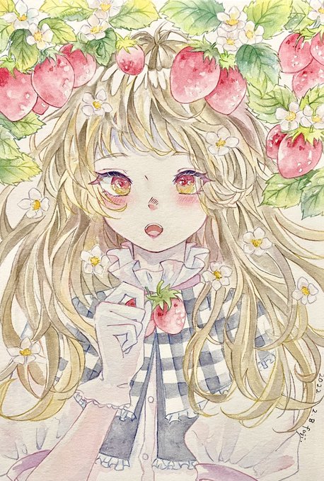 いちごの子 #透明水彩