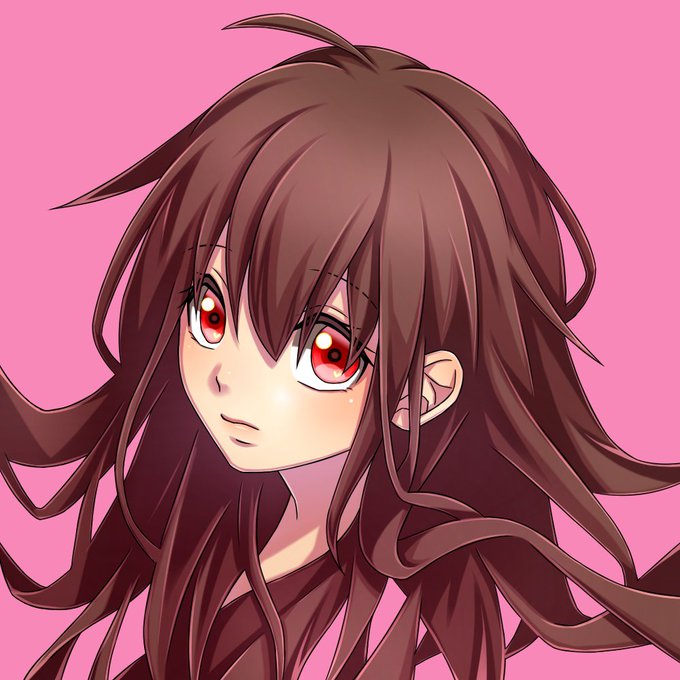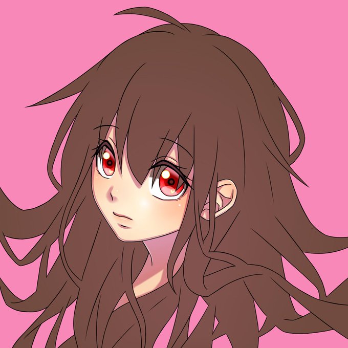 🍀藤木野のイラストができるまで(4/5) 13.髪 / ハイライト② 14.髪 / さらに色微調整(背景に合わせて少しピンクを重ねる) 15.髪 / 瞳(髪と重なった部分)の線を削る 16.髪 / 髪を足す